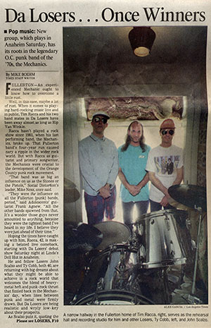 He and fellow Losers John Scalzo and Ty Cobb, both 40, are returning with big dreams about what they might be able to achieve in a rock world that welcomes the blend of heavy-metal heft and punk-rock thrust that fizzled back in the Mechanics' day, when lines between punk and metal were firmly drawn. But Da Losers are being realistic and wryly low-key about their prospects.
